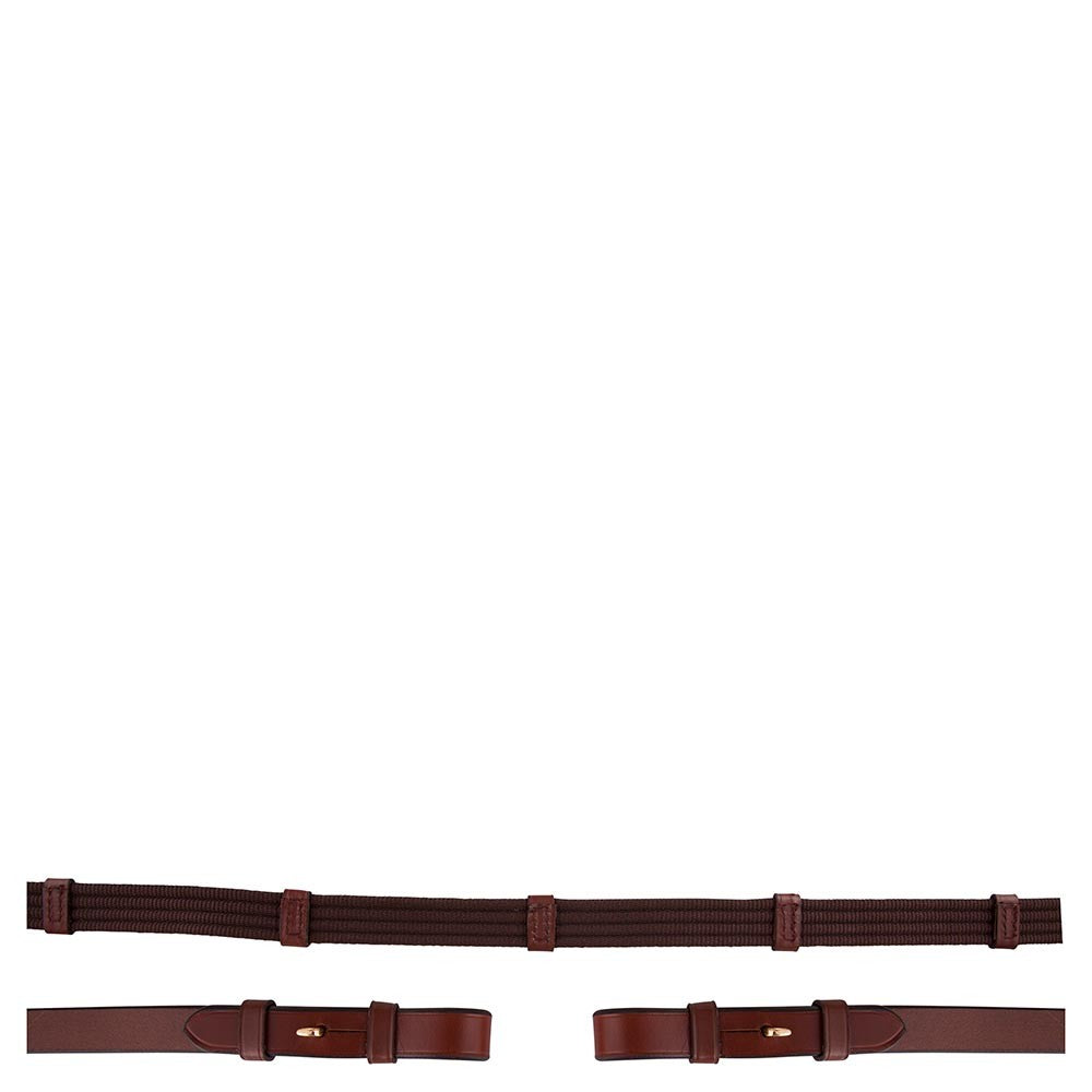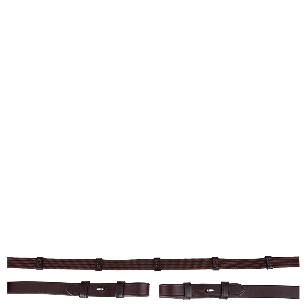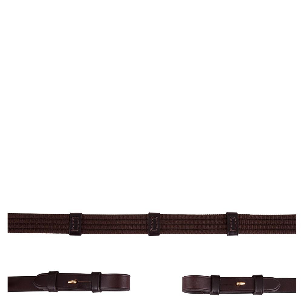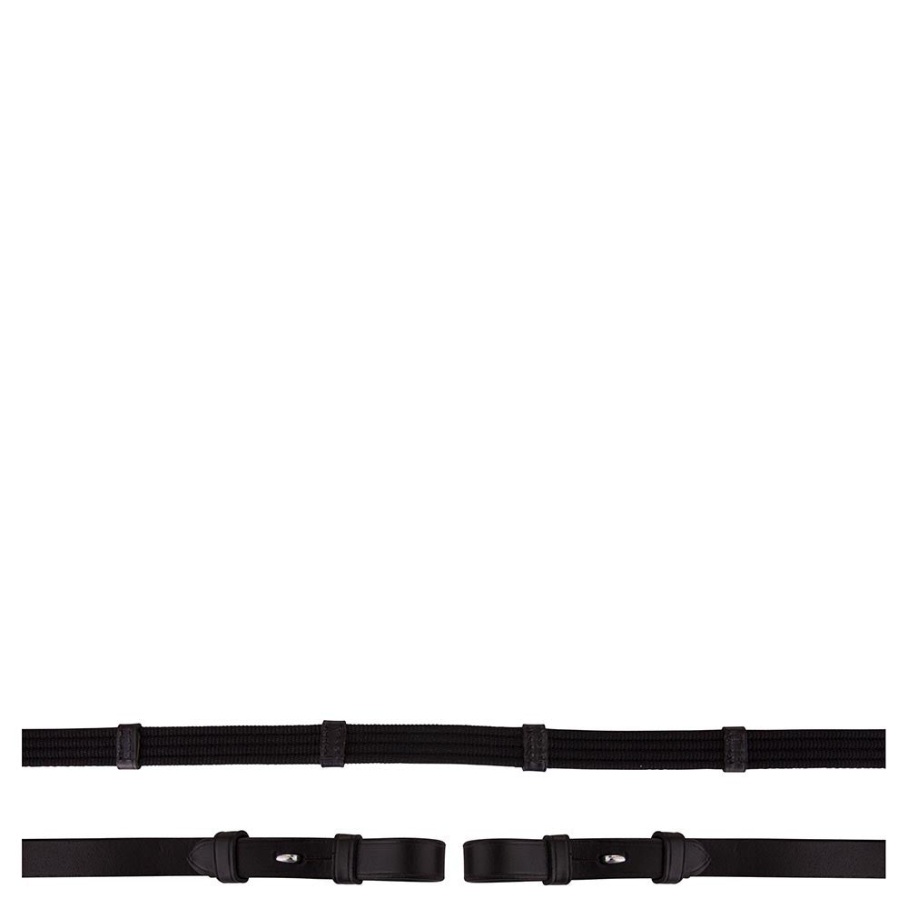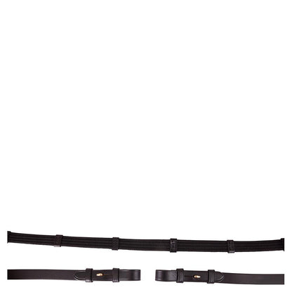 Grâce à leur largeur de 19 mm, elles offrent une prise en main confortable sans surcharger la main du cavalier. Les attaches à crochets (hook stud billets) avec boucles rondes permettent une fixation élégante et sécurisée au mors.