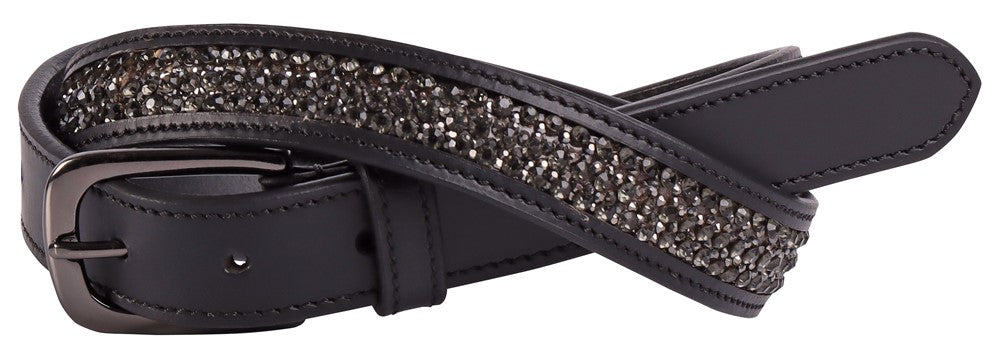 Adj egy csillogó elegancia érintést lovagló- vagy városi öltözékedhez a Crystal bőr övvel. Kiváló minőségű valódi bőrből készült, és csillogó kristályokkal díszített, amelyek kifinomultságot és nőiességet kölcsönöznek. Ideális lovaglónadrág, farmer vagy ruha kiemelésére.