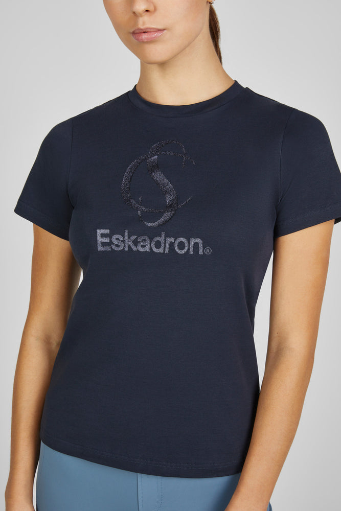 La T-Shirt CLASSIC SPORTS 25 S/S combina eleganza e comfort, perfetta per completare un outfit sportivo o casual in scuderia come nella vita quotidiana. Realizzata in un materiale morbido in cotone, offre una vestibilità aderente per una silhouette lusinghiera. Il suo emblema glitterato sul davanti aggiunge un tocco di brillantezza sofisticato, mentre l'etichetta Eskadron discreta sul retro ne firma l'appartenenza alla collezione Classic Sports.