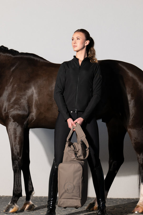 Le sac FAUX LEATHER Eskadron PLATINUM 25 est un accessoire incontournable pour transporter vos bottes et votre casque avec élégance et praticité. Confectionné en similicuir noble, il allie look premium, résistance et fonctionnalité, idéal pour les concours comme pour le quotidien.