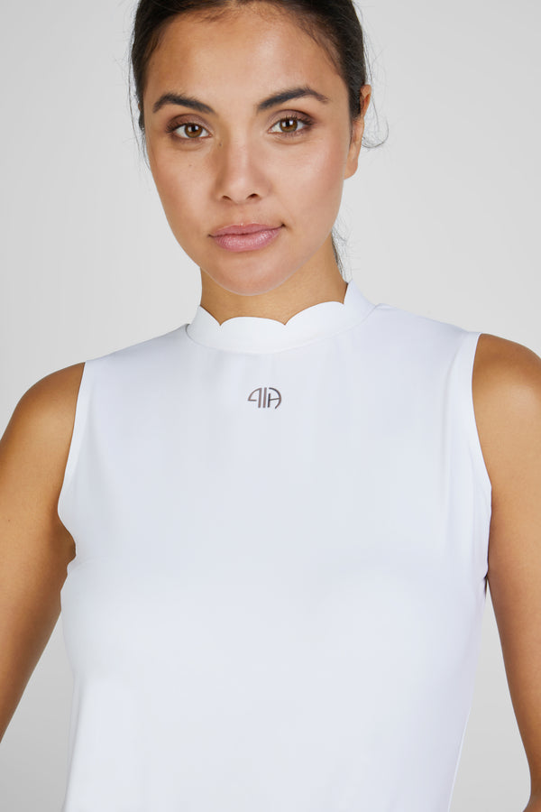 - Petit col montant ondulé, pour une touche élégante et sportive.